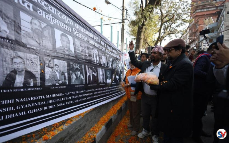 • Gen-z 2.0 ले सहिदको सम्झनामा मौन धारण र तस्बिरमा फूल माला चढायो।