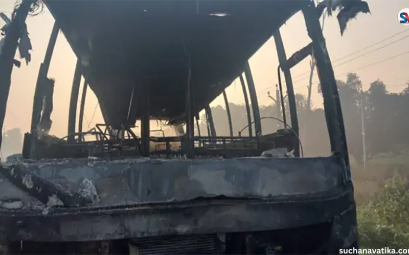 बस करिब १०० मिटरसम्म घिस्रिँदै गएर हाइटेन्सन लाइनको बिजुलीको खम्बासँग ठोक्किएको थियो । खम्बा भाँचिएर बसमाथि खस्दा करेन्ट फैलिएको र आगो लागेको भारतीय मिडियाहरूले जनाएका छन् ।