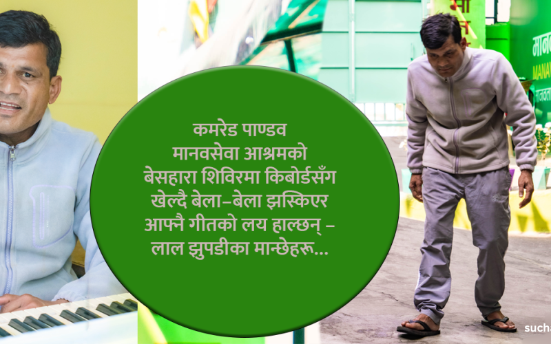 पुस्तक लेख्ने हुटहुटीको त्यान्द्रो समाउँदै आश्रमका चिसा मनहरूसँग छाँद मार्दा एक माधुर्य स्वरको सर्सराहट हिर्काउन आइपुग्यो । त्यो स्वर कहिले सानो साधना कोठामा किबोर्डको धुनसँगै एक्लै सुनिन्थ्यो त कहिले आश्रितहरूका बीचमा ताली सँगसँगै गुञ्जिन्थ्यो । अगाडि उभिंदा समस्याग्रस्त कुप्री परेको ढाडबाट उँधोमुन्टो उठाउँदै उनले भनेका थिए – ‘नमस्ते, म देउडा गायक पाण्डव विष्ट ।’