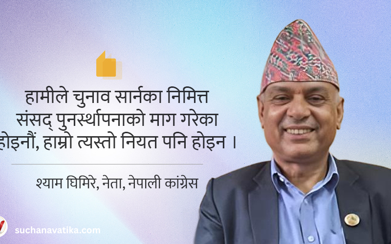 यही प्रश्नमा केन्द्रित रहेर हामीले विघटित प्रतिनिधि सभाका कांग्रेस प्रमुख सचेतक श्याम घिमिरेसँग कुरा गरेका छौं ।