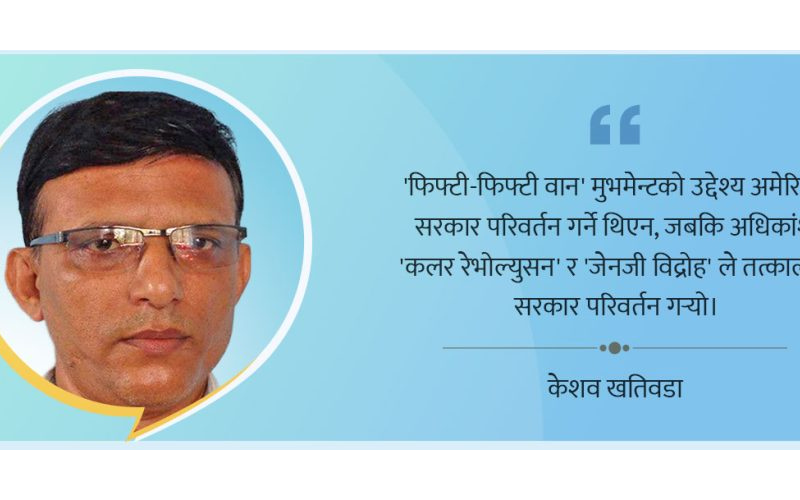 ४. ‘फिफ्टी-फिफ्टी वान’ लोकतान्त्रिक मूल्य र मान्यता अनुरूपको संरचनागत सुधारसँग सम्बन्धित छ। ‘कलर रेभोल्युसन’ अधिनायकवादी सरकारको अन्त्य र निष्पक्ष निर्वाचनसँग सम्बन्धित छ। ‘जेनजी विद्रोह’ भने पुराना दल, असफल नेतृत्व र अनियमितताका विरुद्ध राज्यको ‘रि-इन्जिनियरिङ’ सँग सम्बन्धित छ।