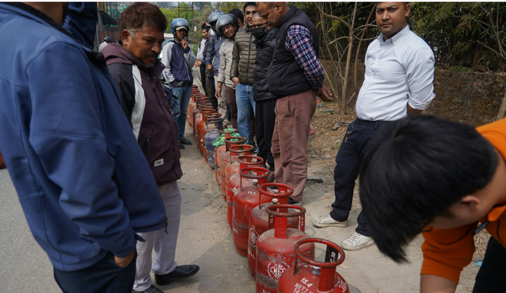 २८ फागुन, काठमाडौं । मध्यपूर्वको तनावले नेपालमा पनि खाना पकाउने ग्यास आपूर्ति प्रभावित भएको छ । कतिपय ग्यास बिक्री डिपो बन्द छन् । सीमित खुलेका डिपोहरुमा उपभोक्ताहरुको लामो लाइन देखिन्छ ।