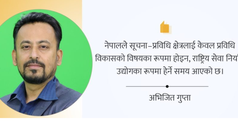 नेपालले सूचना–प्रविधि क्षेत्रलाई व्यवस्थित रूपमा विकास गर्न स्पष्ट र समन्वित सूचनाप्रविधि सेवा निर्यात नीति ल्याउन आवश्यक छ।